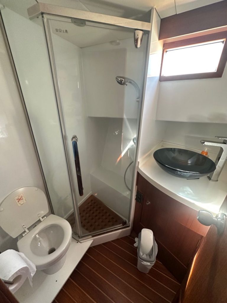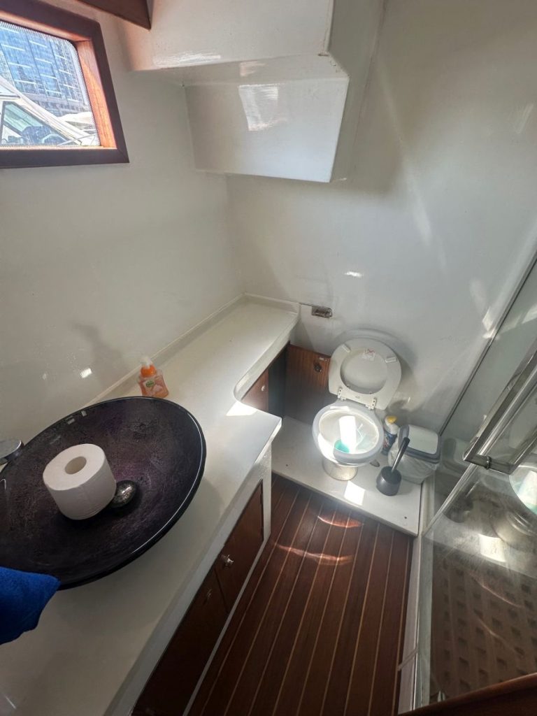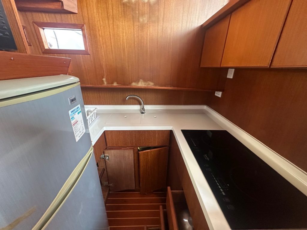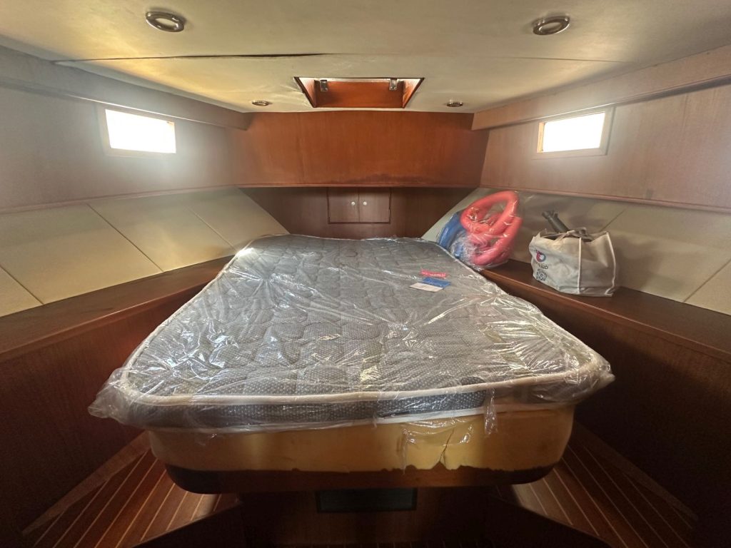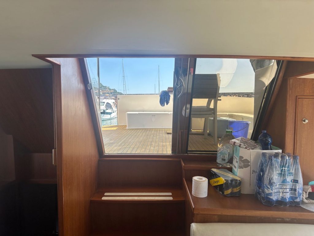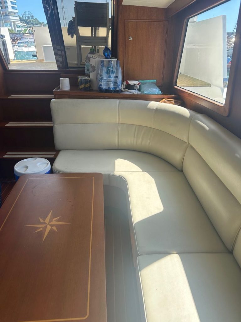 The boat has a bow thruster, is in a decent condition, built not for speed but slow cruising and spaciousness.