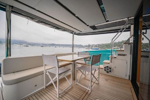 Accommodation : 3 cabin layout with 2 washrooms, spacious saloon, galley and flybridge. Exterior seatings on the bow (front of the yacht) and large aft cockpit area with seats.