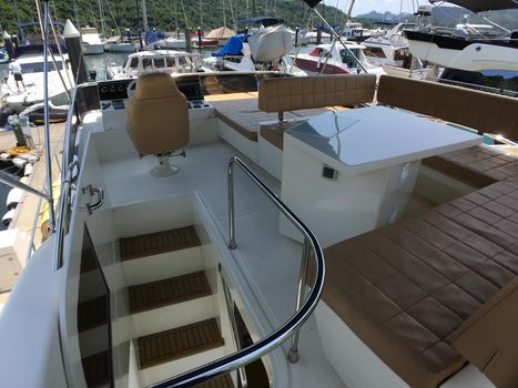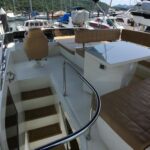 Accommodation : 3 cabin layout with 2 bathrooms. Galley and Saloon are integrated and a separate dining area on port side. 2 control stations one in saloon and 1 on the flybrige. Spacious aft cockpit and spacious flybridge.