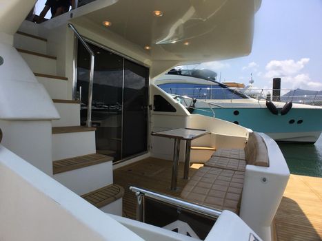 Astondoa 44 flybridge is truly one of the best designs of this size range. This motor yacht was built in Spain. Built with not just fiberglass but also kevlar fibers. This gives this yacht extra strength. Astondoa yachts are known of their quality and one of very few factories in the world that still make luxury yachts with Lloyds classification. One of the toughest quality classification till date. Astondoa’s thick hull ensure safety and a smooth passage in rough waters.