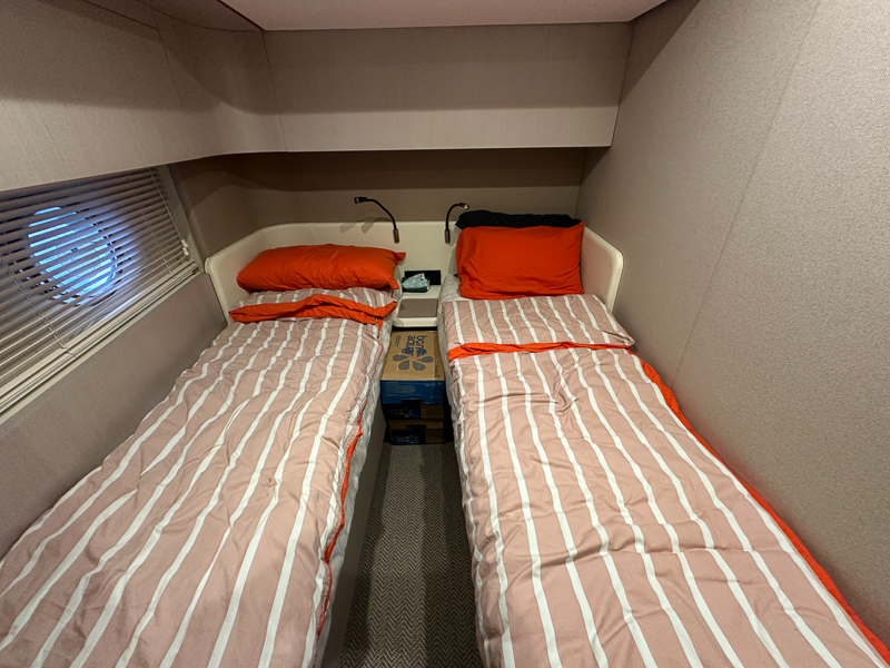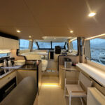 Accommodation : 3 cabin layout with 2 bathrooms. Galley (kitchen) in aft saloon integrated with cockpit to be spacious. Large saloon, flybridge, and aft cockpit.