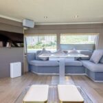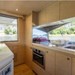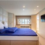 Featuring a spacious 3-cabin, 3-bathroom layout, this yacht is ideal for family cruising or entertaining guests. Equipped with twin generators, gyroscopic stabilizer, hydraulic platform, and full air-conditioning, she is fully set up for enjoyable and stable cruising in all conditions.