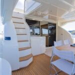 This 2013 Ferretti 690 is a well-kept luxury flybridge yacht in Hong Kong, offering a perfect balance of performance and comfort. Powered by twin MTU 1250hp engines, she cruises comfortably at 25 knots with a top speed of 28 knots.