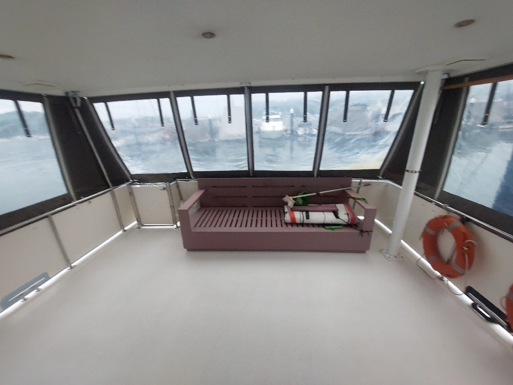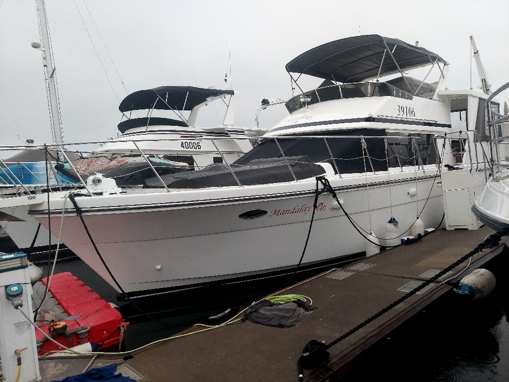 Powered by twin Cummins 425hp engines, she offers reliable performance for coastal cruising, complemented by a Northern Lights generator and upgraded modern electronics including GPS, radar, autopilot, and VHF. The fully air-conditioned interior features a practical 2-cabin, 2-bathroom layout, along with a spacious saloon, functional galley, and generous outdoor areas including flybridge and aft deck.