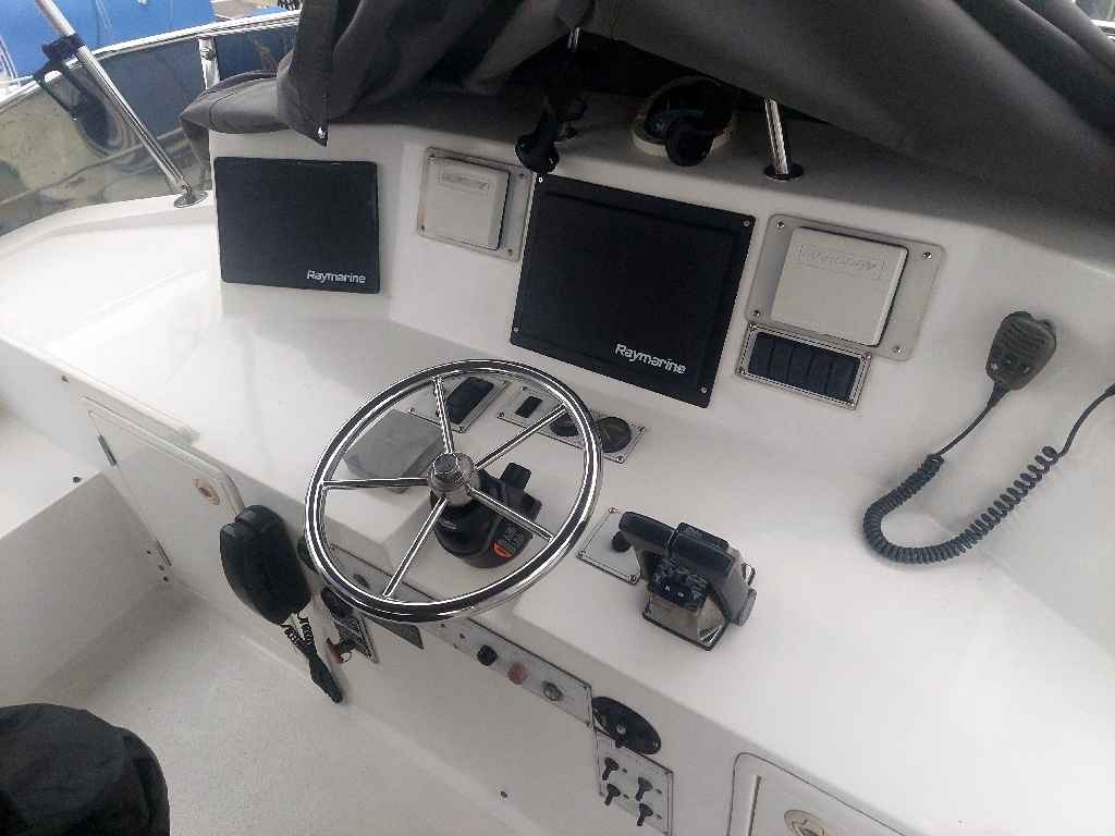 Electronics : New All in one Screens, GPS, Radar, VHF, Autopilot, Fully Air conditioned Cruisair. 3 units total. Galley equipment like Fridge, microwave, storage,