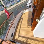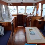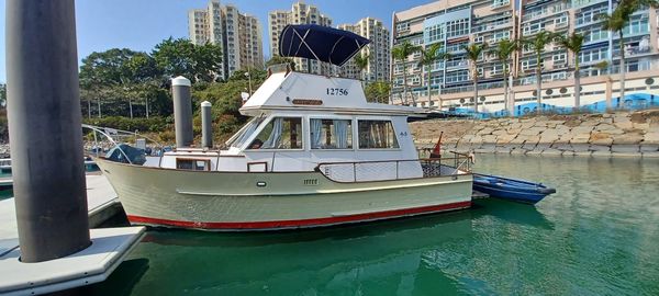The Island Gypsy 32 is a classic 32 ft motorboat (1979) from Hong Kong, powered by a 155 HP (116 kW) Yanmar diesel inboard with approx. 420 engine hours. It comes with a 5 kW Kohler generator, GPS, and dual console, plus cabin, toilet, and air conditioning with a standard galley. The teak wood deck flooring was renovated in 2024, and the boat was spray painted in 2023.