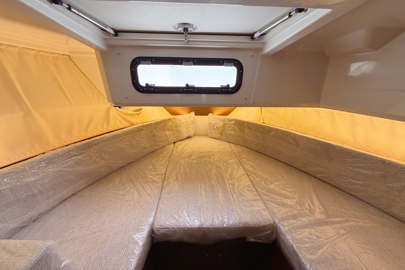This model features a well-designed interior with 2 cabins and a separate toilet, making it ideal for overnight stays. The spacious deck layout and enclosed helm provide flexibility for fishing, cruising, or relaxing with up to 10 guests onboard.
