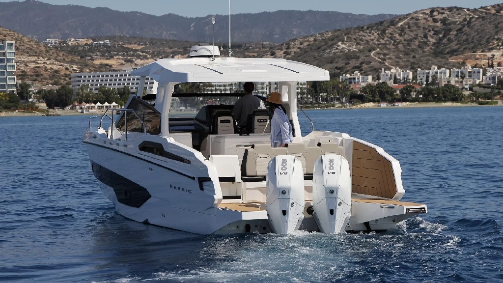 With generous fuel and water capacities, and built to high European standards, the Karnic CS10 Hard Top is an outstanding choice for those seeking a luxurious, high-performance day cruiser with excellent value.