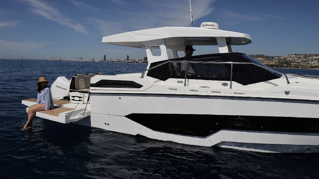 Powered by twin 300hp outboard engines (Suzuki or Yamaha), the CS10 delivers strong performance, smooth handling, and reliable cruising. Its smart hard top design provides excellent protection while maintaining an open, airy cockpit layout.