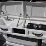 LP Weekender Helm Seat Layout which has Built-in Sink and table top space behind the helm