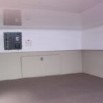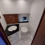 -Lockable shower-toilet compartment with ventilation portlight, Corian sinktop and storage lockers