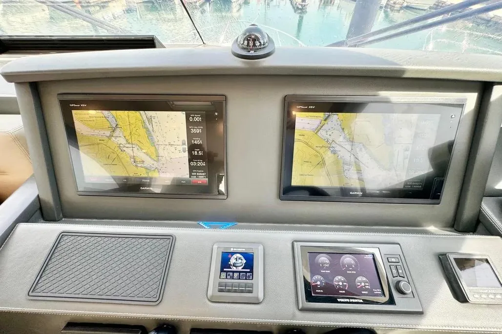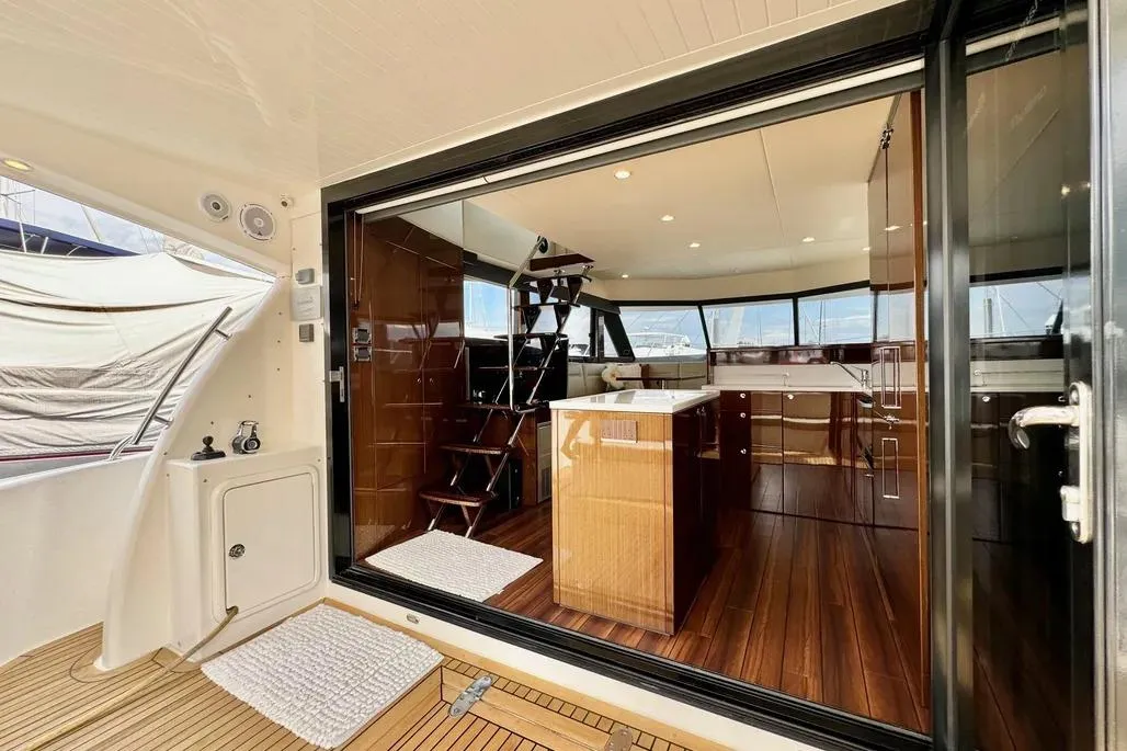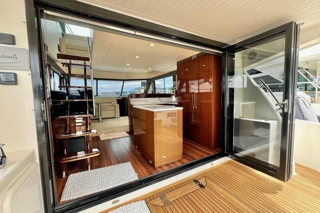 Accommodation : 3 cabin layout with 2 bathrooms. Spacious Saloon, Fully equipped Galley (kitchen), Fully enclosed flybridge, spacious aft deck.