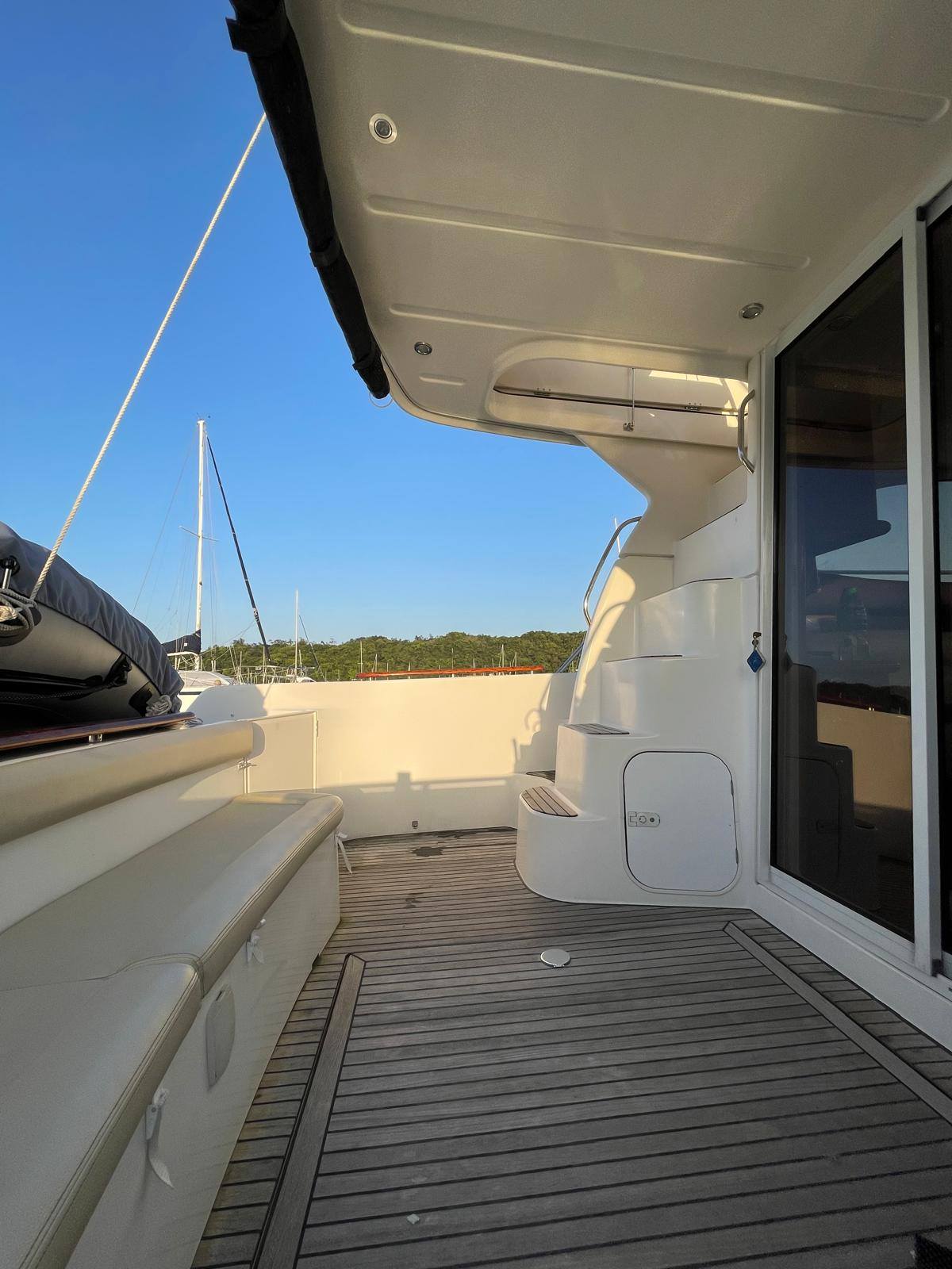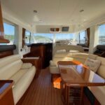 Features: Bow thruster, flybridge, bimini, GPS/radar, air conditioning, heating, generator, full galley (fridge, microwave, cooker), entertainment systems