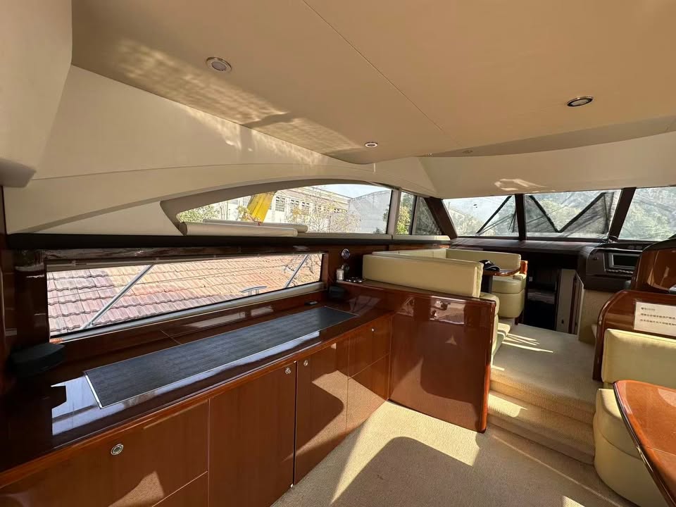 A 2012 Princess 54 Flybridge, built in the U.K. by Princess Yachts, currently located in China on dry dock and presented in good condition. Powered by twin Volvo D13 800hp engines, she offers impressive performance with a top speed of up to 32 knots in favorable conditions. The yacht features a 3-cabin, 2-bathroom layout, a large saloon, lower-deck galley, spacious aft cockpit, flybridge, and a sunbed on the foredeck. Well equipped with a diesel generator, full air-conditioning, bow thruster, and comprehensive Raymarine navigation electronics, making her an excellent choice for comfortable cruising and entertaining in warm climates.