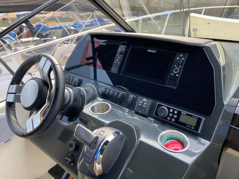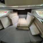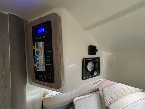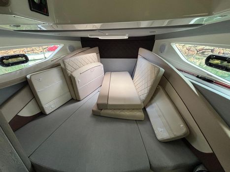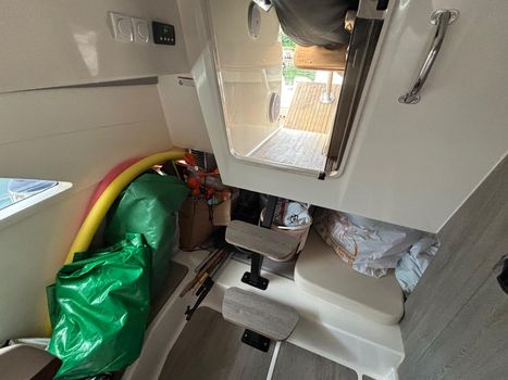 Swim platforms & ladder , Navigation lights, Self-bailing cockpit , Anchor locker, LED courtesy lights, Hydraulic steering, Electric & manual bilge pump, SmartCraft gauges (speed/tacho), Bow sunbathing area (adjustable), Cabin table + dinette setup