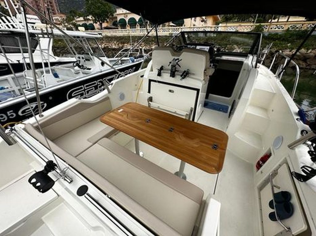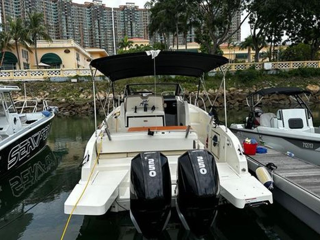 This 2022 Quicksilver 875 is a modern and versatile day cruiser, perfect for family outings and coastal cruising in Hong Kong. Powered by twin Mercury 250hp outboard engines, she offers strong performance and reliability.