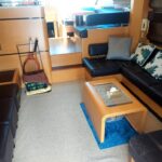 Mainly the teak on the cockpit was in good condition although it needs oiling. The most importantly the Engine room was clean, the engines did not look rusty or corroded. The Engine room was also very neat and well maintained and clean. The exhaust pipes and attachment were looking good. The engine was last serviced 1 year ago. The boat was also last lifted one year ago. Which means, that if a client is interested we should lift the boat, clean the bottom and do a sea-trail. Overall, although ofcourse we recommend survey and sea-trails. But the condition of the boat looked very good which can be immediately be used by the new owner.