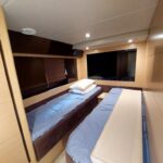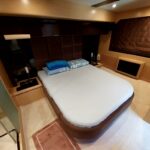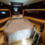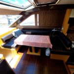 This boat built in 2011, and is around 14 years old. Surprisingly the gelcoat of the boat is shiny and looks like new. This indicates that the boat was very well maintained. It is located in a premium marina club in Hong Kong with full time crew. The non skid floors on the boat were very clean. The edges of the windows inside and outside did not show any signs of leaks. The silicon was intact. The Anchor is also shiny and well maintained. The interior of the boat was very impressive, with every thing original which means it has never been renovated. The condition of things like carpet, sofas, the cabinet door handles, the cieling panels, the wall panels, the bed heads, it was all like new. The toilets were clean and running water and everything was operational.