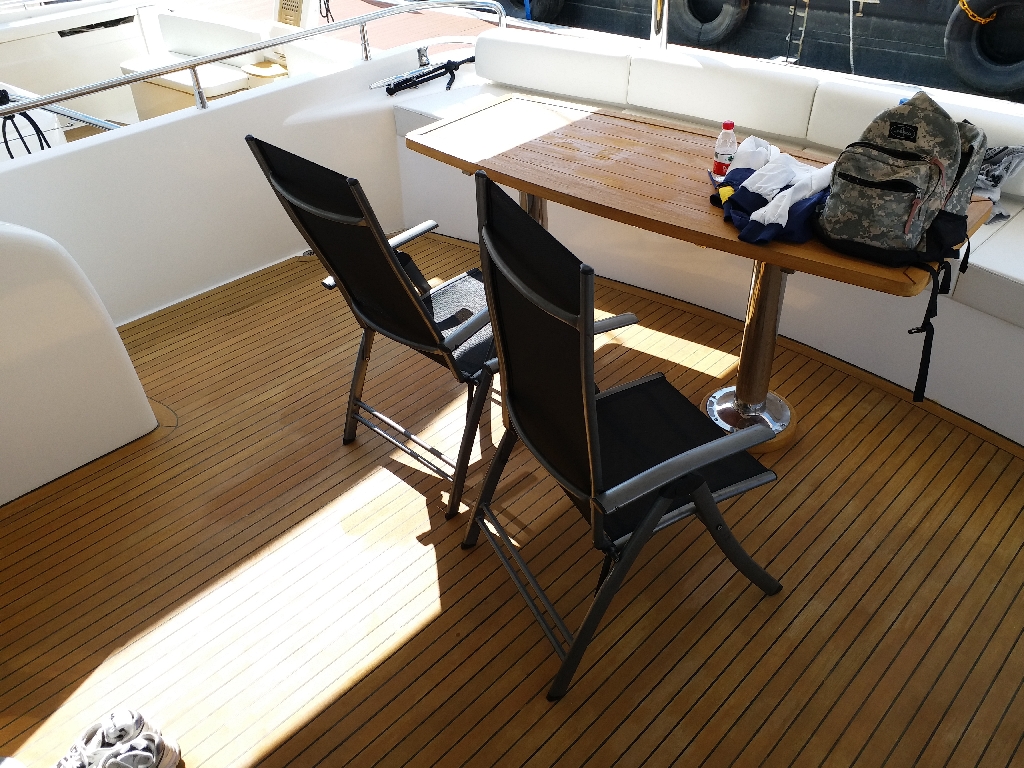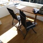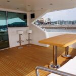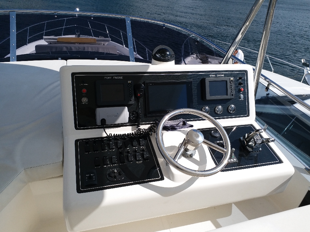 Equipment : Electric Cook top, microwave oven, Fully Air conditioned with 80,000 BTU, Windlass with 200ft Chain and 80 Lb Anchor, Garmin GPS, Garmin Radar, Marine Compass, Bow Thruster, Garmin VHF, High Quality Teak on aft deck, Searchlight, Trim Tabs,