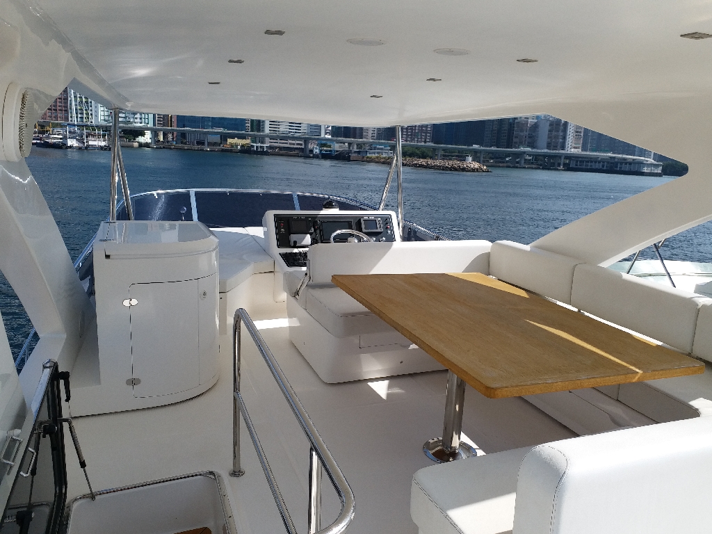 This stunning 2015 Ruby 68s is a premium 68-foot flybridge motor yacht built in Taiwan, featuring twin Caterpillar 1025hp engines for excellent performance and range. She offers luxurious accommodation with 4 spacious cabins, 4 en-suite bathrooms, and a beautifully appointed saloon with fully equipped galley. The yacht is outfitted with top-tier navigation systems (Garmin GPS, Radar, VHF), comprehensive climate control, and premium amenities including teak decking, bow thruster, and trim tabs. In excellent condition with dark wood interiors and modern finishes, this is an ideal vessel for extended cruising and entertaining. Ready for immediate viewing in Hong Kong.
