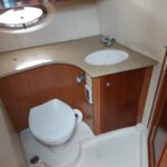 | Accommodation | 2 cabin layout with 1 bathroom + saloon area + Galley (kitchen) + aft cockpit and flybridge + extra shower room in forward cabin |
