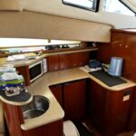 Flybridge, Aft cockpit deck, large saloon, galley, 2 cabins with 2 washrooms.