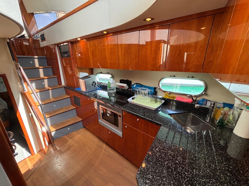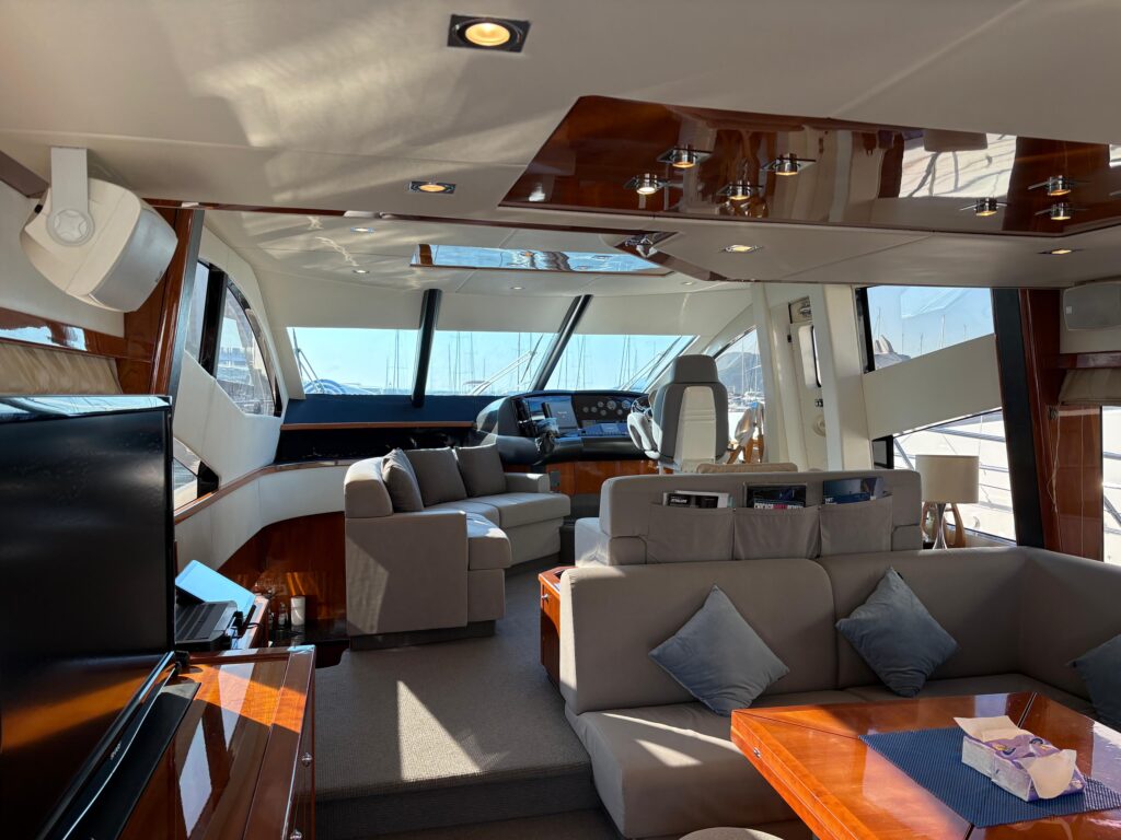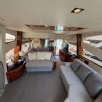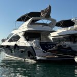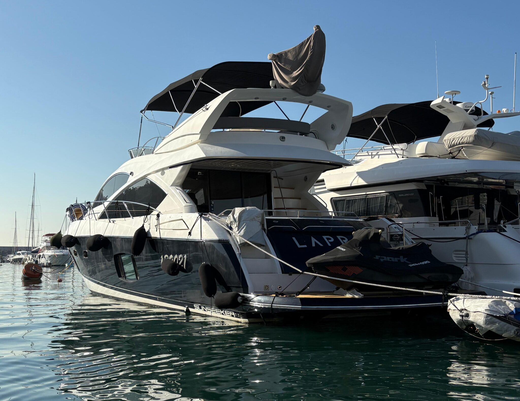 Sunseeker 60 Manhattan (2008) — built in the UK, this well-proportioned flybridge yacht offers a comfortable blend of performance and luxury. Powered by twin MAN V8 900HP engines, she reaches up to 25 knots and features a stable deep-V planing hull. Licensed for up to 30 passengers, she offers a spacious 3-cabin, 3-bathroom layout, generous interior volumes, and is well equipped with full navigation electronics, bow thruster, and a hydraulic up-down swim platform—ideal for cruising and entertaining.